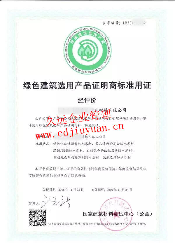 綠色建材認(rèn)證證書
